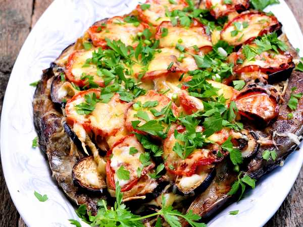 Запеченная в духовке скумбрия с овощами готова к подаче на стол!