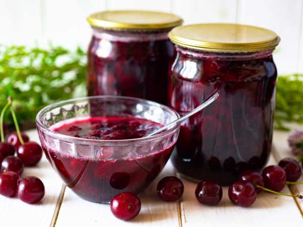 Утром готовое вишневое варенье с грецким орехом отправляем на хранение в кладовую. Приятных консерваций!