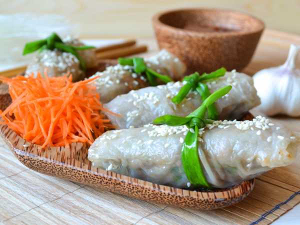 Сверните пластинки рулетиком и скрепите зубочисткой.