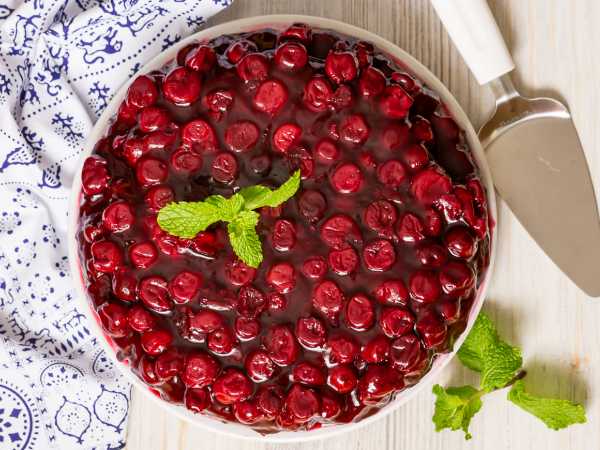 Выпекайте вишневый пирог со сметанной заливкой при температуре 160-170°С около 30-45 минут. Ориентируйтесь по своей духовке. Серединка пирога должна чуть подрагивать, но быть плотной, не жидкой. Не увеличивайте сильно температуру, иначе тесто сгорит, а начинка не пропечётся.