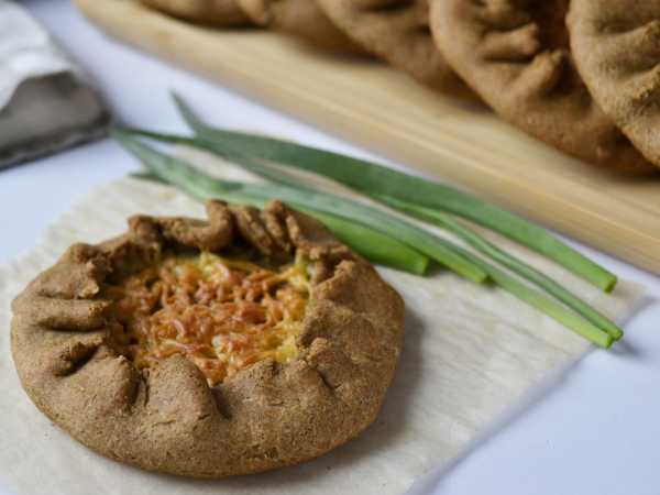 Разложите начинку. Заверните края теста наверх. Для удобства можно зафиксировать галету кондитерским кольцом.