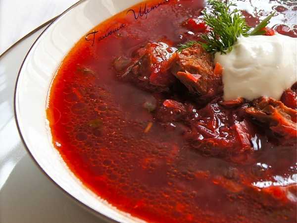 Горячий мясной борщ с кольраби разольем по порционным тарелкам, подадим к столу со сметаной. Приятного аппетита!