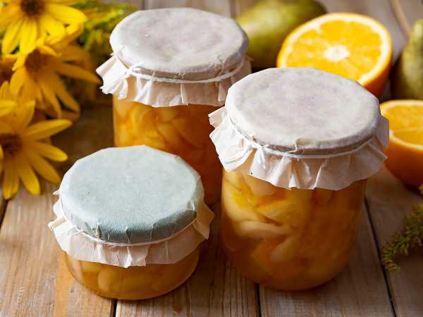 Горячим сиропом залейте нарезанные фрукты и дайте постоять час. За это время персики и груши пустят сок и хорошо пропитаются сиропом.