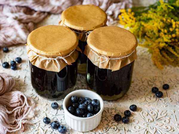 Разложите джем из голубики по подготовленным стерильным банкам.