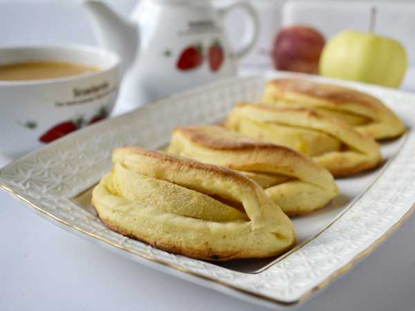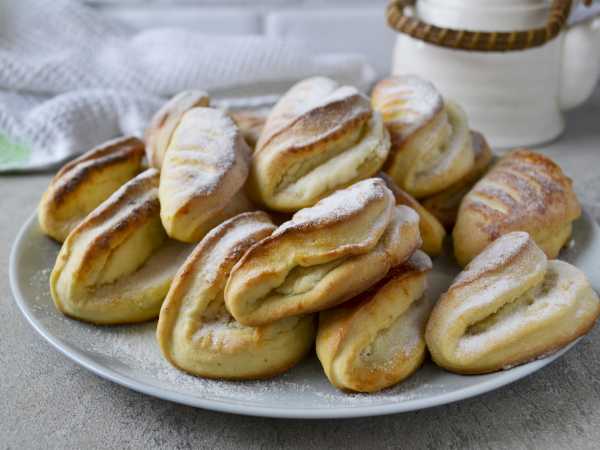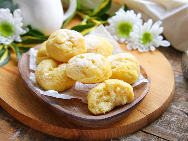 Для начинки смешайте творог, яичный белок, сахарозаменитель по вкусу, сметану и ванилин. Яичный желток отложите для смазывания заготовок.