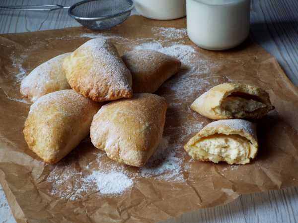 Полученные заготовки переложите на противень, выстеленный пергаментом, смажьте отложенным яичным желтком. Выпекайте ПП сочни с творогом в заранее разогретой до 180 градусов духовке примерно 20-25 минут.