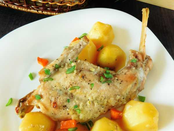 Тушите кролика в утятнице около 2 часов, крышку желательно не открывать, чтобы влага не испарилась.
