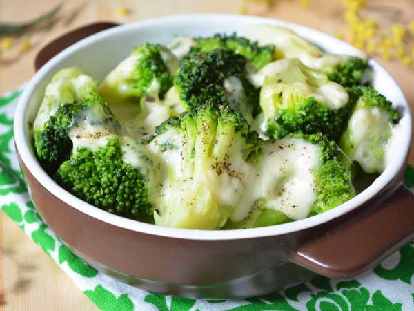Добавьте подготовленный соус и тщательно перемешайте. Брокколи готова к запеканию.