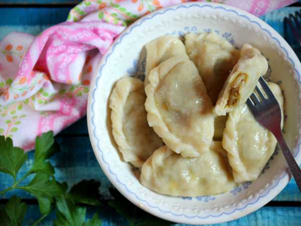 Вареники с печенью отличаются ярким ароматом и насыщенным вкусом. Тесто замесите на молоке с добавлением куриного яйца, а для начинки обжарьте говяжью печень с луком, затем всё перекрутите в мясорубке. Благодаря луку начинка станет сочнее и вкуснее.