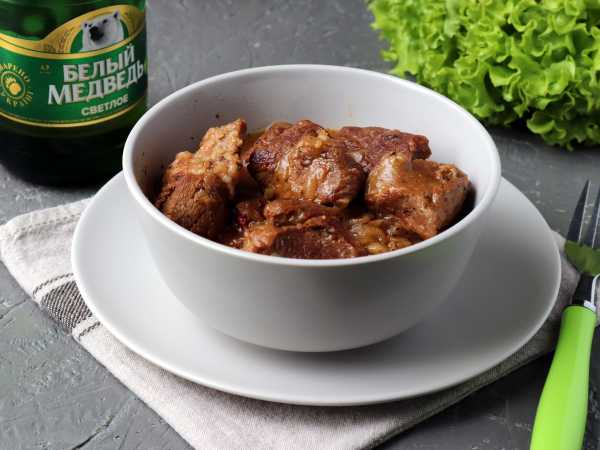 Затем добавьте в емкость лавровые листья, влейте горячую воду и томите говядину примерно 40 минут до мягкости на умеренном нагреве. Затем попробуйте мясо на вкус. Если оно мягкое и нежное, то отлично. А если немного жестковатое, то долейте воды и потушите его еще 10-15 минут.