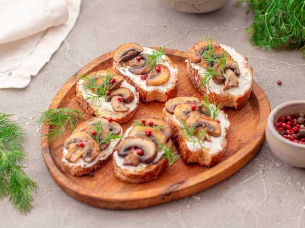Брускетты с грибной икрой готовы. Подавайте к столу.