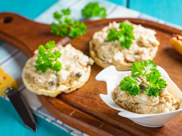 Брускетта с тунцом и яйцом получается вкусной, приятного!