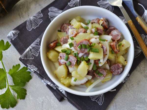 Если готового мяса нет, залейте кусок говядины холодной водой, поставьте кастрюлю на огонь. После закипания уменьшите огонь, снимите пену и варите до готовности мяса. Во время варки бульон посолите. Готовое мясо достаньте из бульона и полностью охладите перед нарезкой в салат.