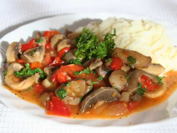 Горячий гуляш из свинины и говядины (вместе) с подливкой подаем с любимым гарниром, например с отварным картофелем, - это невероятно вкусно и сытно! Приятного аппетита!