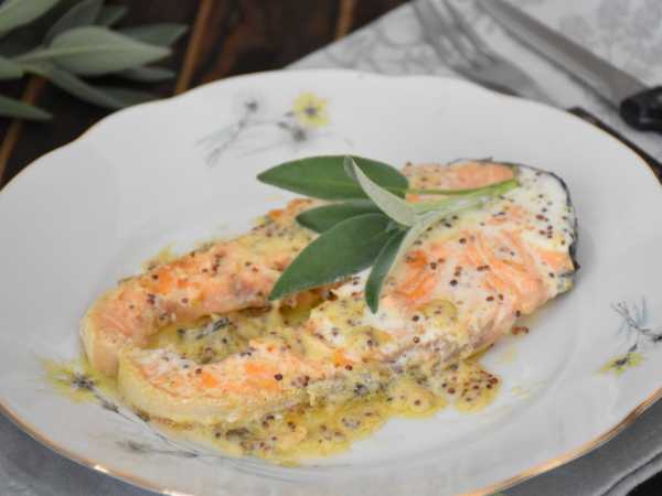 Разогреваем духовку до температуры 180°С (с циркуляцией воздуха) и запекаем в ней кокиль с рыбой на протяжении приблизительно 10-15 минут (до румяной корочки).