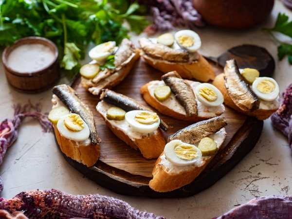 Украсьте веточкой свежего укропа или петрушки, подавайте к столу сразу же после приготовления, пока хрустящая корочка не размокла. Бутерброды со шпротами, яйцом и помидором готовы!