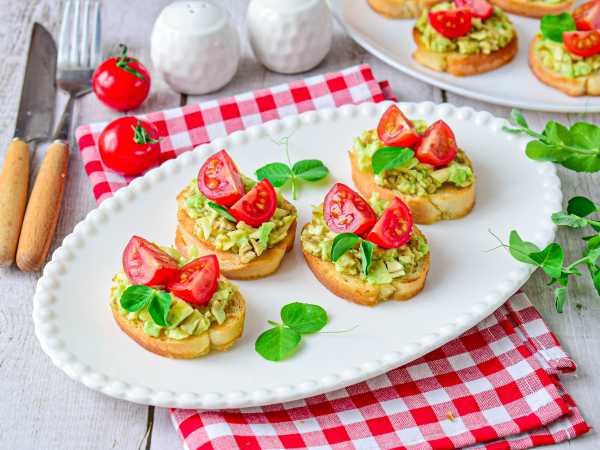 Брускетта с лососем и гуакамоле готова! Подавайте закуску к столу сразу же после приготовления, поскольку некоторые сорта авокадо даже с большим количеством лимонного сока все равно со временем темнеют.