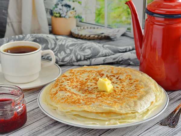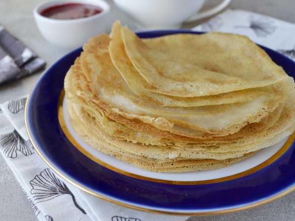 Тонкие дрожжевые блины на кефире с дырочками готовы. К столу подаём их горячими со сметаной или джемом. Приятного аппетита!