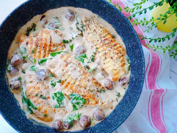 Сливки можно взять и с меньшим процентом жирности, но тогда их необходимо будет загустить мукой или крахмалом, чтобы соус по итогу не был жидким: он должен быть вязким.