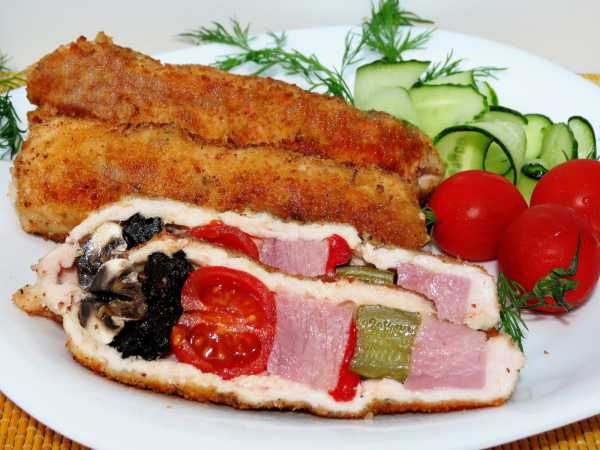 Отбивные из куриной грудки с грибами и сыром готовы.