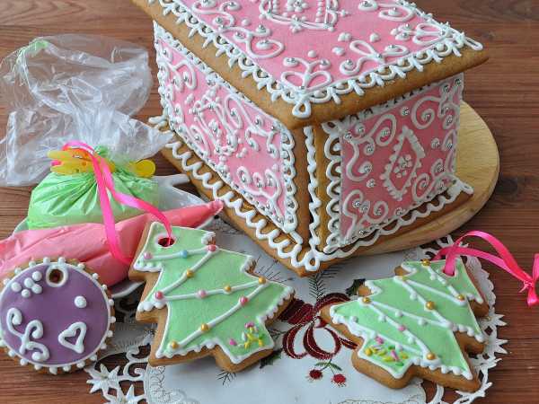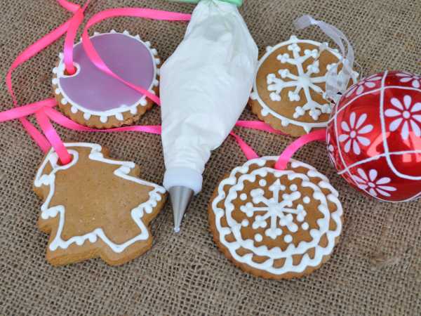 Если планируете украшать пряники конфетами или кулинарным декором, их нужно клеить сразу, пока глазурь не засохла.