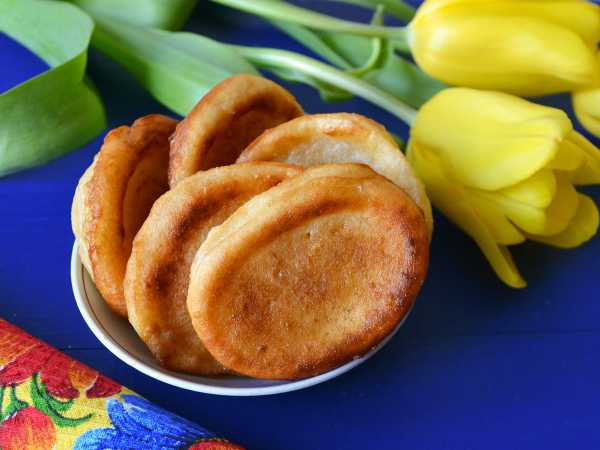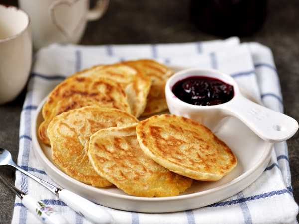 Постные оладьи на минералке логично подавать с вареньем, джемом или мёдом, а так-то и сгущенка, и сметана – всё в тему.