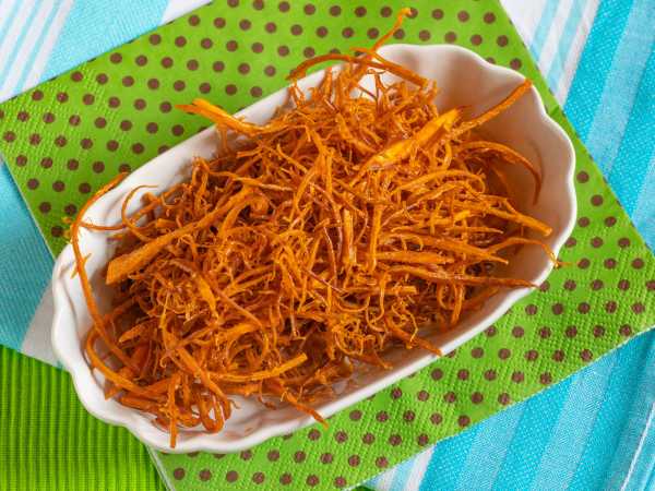 Тщательно вымойте, обсушите батат и, не очищая от кожуры, нарежьте тонкими кружочками толщиной примерно 2-3 мм.
