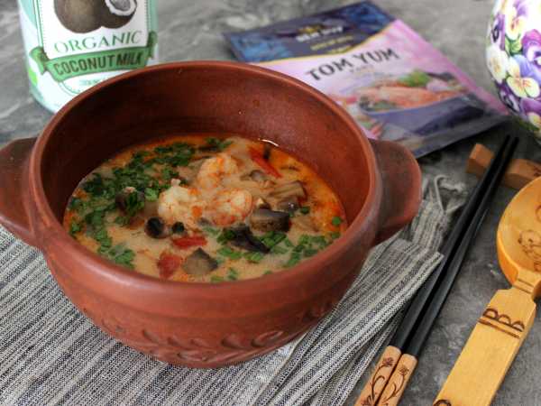 Готовый суп карри с курицей, грибами и кокосовым молоком сразу же разлейте по тарелкам и подавайте к столу.