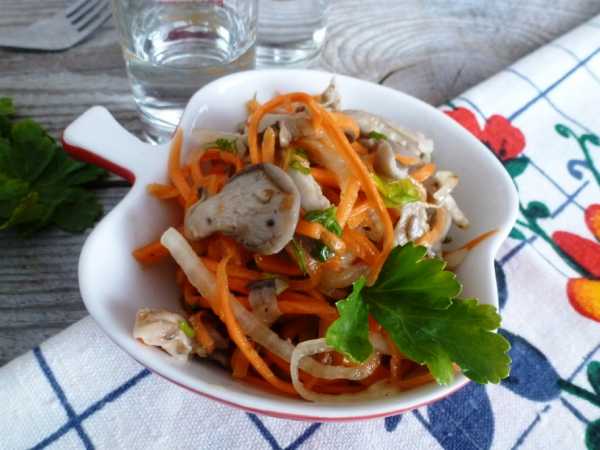 Репчатый лук нарезала перьями, добавила в грибы и заправила все ароматным маслом, ну тем, которое аппетитно пахнет семечками.