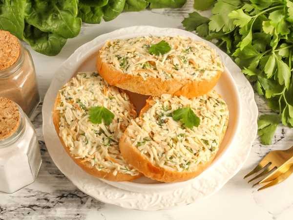 Куриное мясо для брускетт может быть разным: вареным, копченым, запеченным и т.д. Быстро и вкусно получается с покупным варено-копченым куриным мясом (грудки, окорочка).