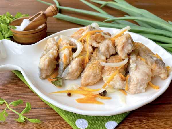 Как только луковые ломтики станут мягкими и чуть поменяют цвет, сразу же добавьте в сковороду куски рыбы. Жарить ее нужно по две-три минуты с каждой стороны, помешивайте лук, чтобы не пригорел.