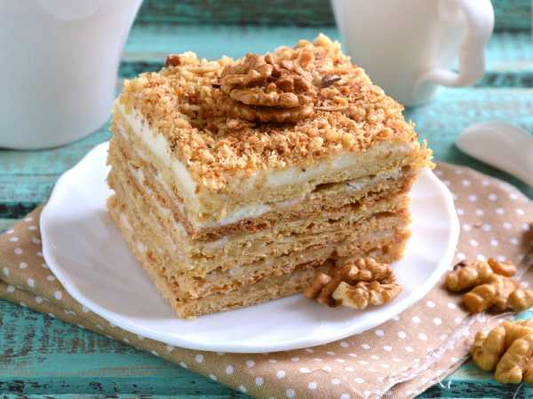 Посыпьте торт «Медовый пух» крошкой. Через 2-3 часа он пропитается и будет необыкновенно вкусным.