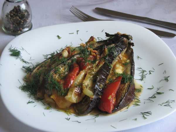 Для приготовления нам понадобится баклажаны, помидоры, чеснок, сметана (можно заменить на майонез), зелень и растительное масло для жарки.