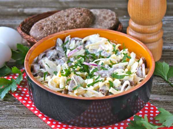 Помните, что в салат добавляются только охлажденные ингредиенты, иначе срок его годности будет небольшим!