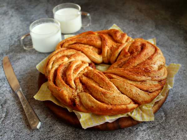 Сплетите косу, поворачивая тесто срезом кверху. Края подверните.