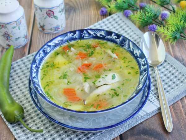 Ароматный, сытный куриный суп с пельменями готов. При подаче в тарелку добавьте кусочек отварной курицы.