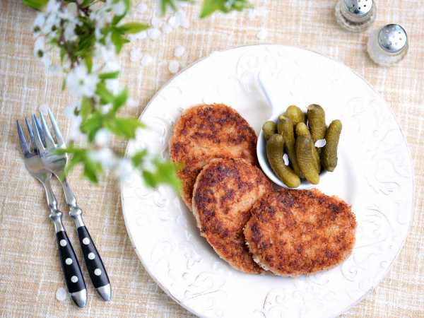 Из приготовленного фарша сформируйте котлеты, обваляйте в панировочных сухарях и выложите на горячую сковороду с подсолнечным маслом. В качестве панировки можно использовать также муку пшеничную, кукурузную или жарить вообще без панировки.
