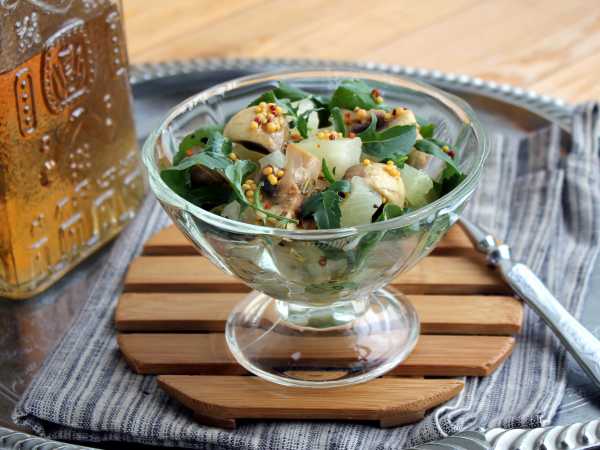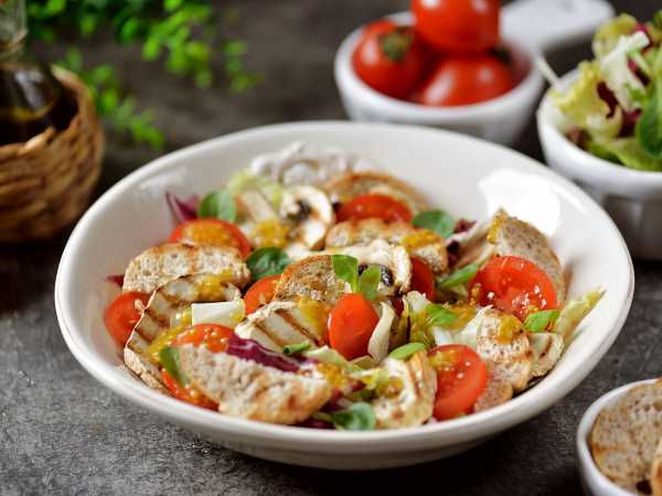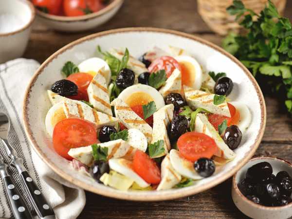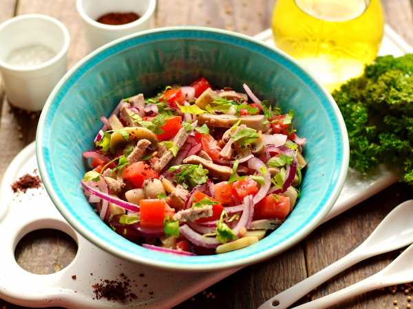 Постный салат с сыром тофу и грибами готов!