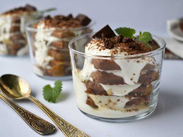 Все формы по возможности нужно закрыть и убрать в холодильник минимум на пару часов. Конечно, кушать десерт можно хоть сразу, но говорят: чем дольше тирамису настаивается, тем вкуснее оно получается. Поэтому потерпите хотя бы до следующего утра и порадуйте родных за завтраком с чашечкой кофе.