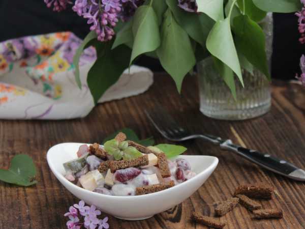 Мясные продукты нарежьте. Подойдут любые копчености, обрезки копченых ребер, сосиски, колбасы.