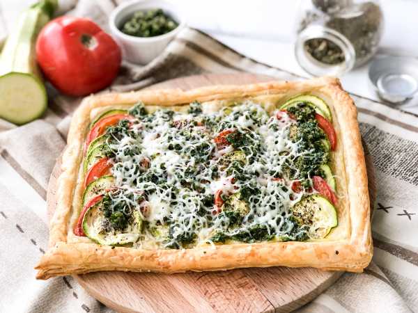 Из обрезков теста сделайте любое украшение. Я сделала простую решетку поверх теста.