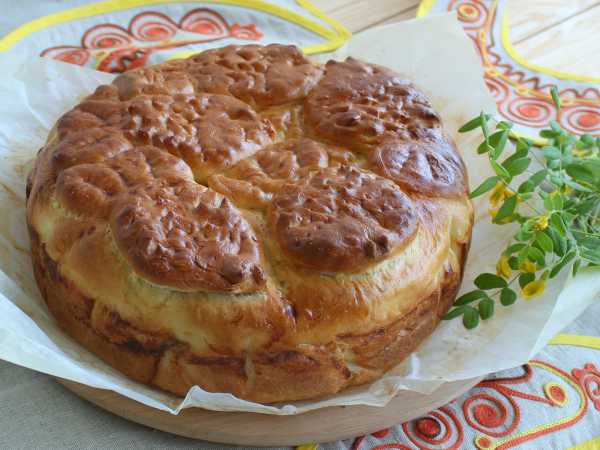 Оставьте пирог для подъема (расстойки) на 40-60 минут, накрыв влажным полотенцем. Перед отправкой в духовку смажьте взбитым яйцом.