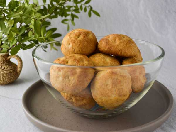 Остывшие булочки разрезаем, как показано на фото. Если любите сочную выпечку и планируете есть пирожные прямо сейчас, то сбрызните тесто сладким ромом или коньяком с медом.