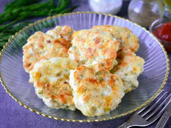 Обжаривайте куриные котлеты по 5-6 минут с двух сторон, чтобы подрумянились. Сделайте средний огонь. Такие котлеты жарятся быстро. В конце прикройте сковороду крышкой и томите котлеты на самом медленном огне 4-5 минуток, так они станут еще пышнее.