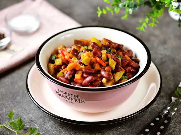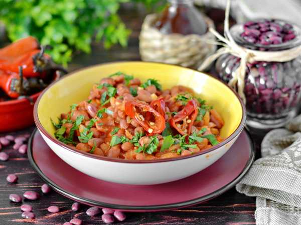 Перемешайте продукты. Если получается очень густое пюре, добавьте чуть-чуть отвара, в котором варилась фасоль.