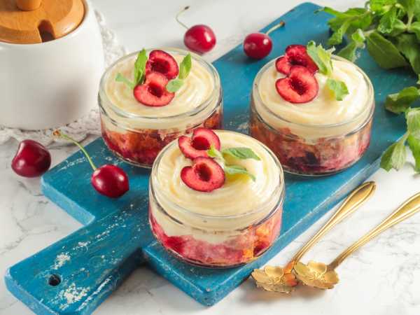 Трайфл «Вишня в шоколаде» готов. Украшаем десерт по желанию и кушаем ложечкой.