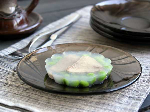 Готовое заливное перед подачей выложить на тарелку и можно приступать к ужину!
