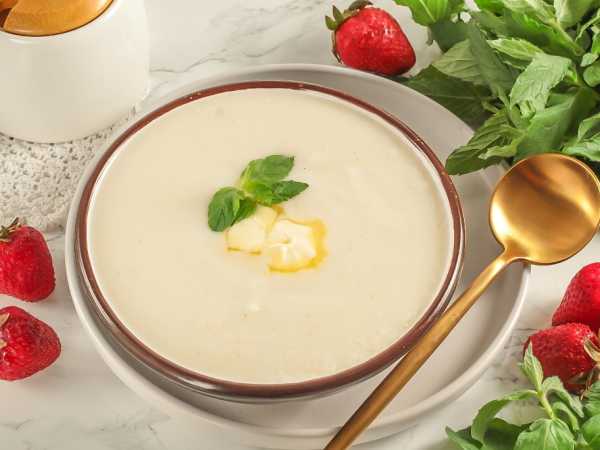 Следом всыпьте манную крупу, размешивая содержимое кастрюли венчиком (чтобы не было комков). Варите кашу еще 5 минут.