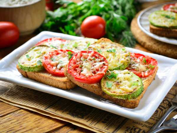 Соберите ингредиенты для приготовления закуски из кабачков с помидорами и чесноком.