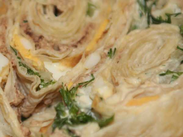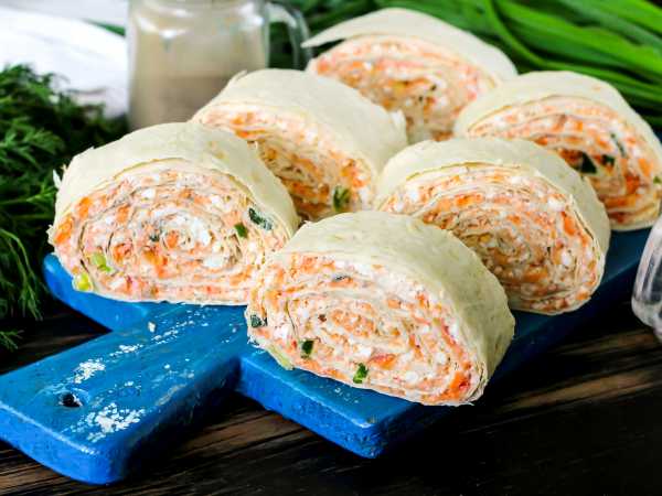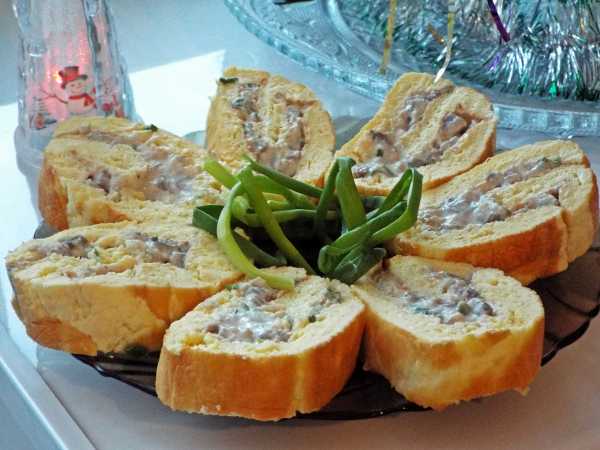 Салат «Царский рулет» с красной рыбой готов. Подавайте его на праздничный стол сразу после украшения. Краешки перед подачей можно подрезать, чтобы начинка была видна. Приятного!